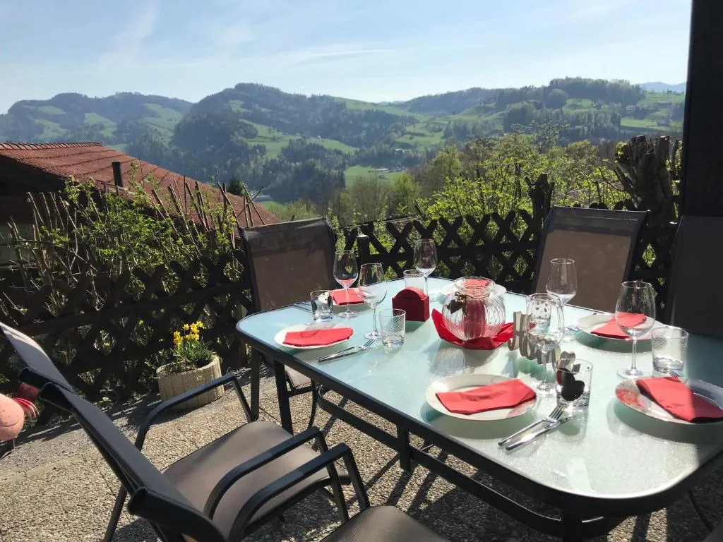 Providing a garden, Chalet Auszeit im Wanderparadies Toggenburg - gern mit Hund - Ruhe und Enspannung pur offers accommodations in Mogelsberg. This property offers access to a balcony and free private parking. Olma Messen St. Gallen is 15 miles away and Säntis is 19 miles from the vacation home. Offering a terrace and mountain views, the vacation home includes 3 bedrooms, a living room, cable flat-screen TV, an equipped kitchen, and 1 bathroom with a bath and a shower. The parquet floors, fireplace, and peaceful vibe add to the ambience of the room. The property has an outdoor dining area. Guests can make the most of the warm weather with the property's barbecue facilities. Guests at the vacation home will be able to enjoy activities in and around Mogelsberg, like cycling and hiking. Guests can also warm up near the outdoor fireplace after a day of skiing. The nearest airport is St. Gallen-Altenrhein Airport, 27 miles from Chalet Auszeit im Wanderparadies Toggenburg - gern mit Hund - Ruhe und Enspannung pur.
